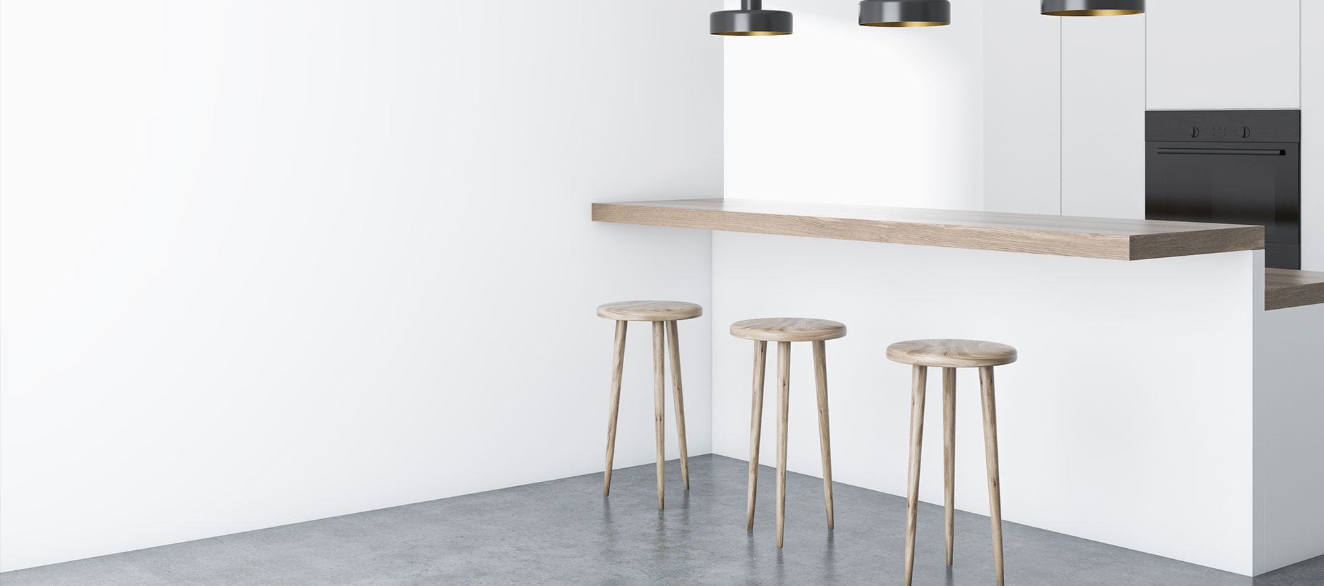 Offrez-vous un bar de cuisine ou un bar de salon moderne et raffiné en privilégiant les tabourets au design épuré, les lumières douces et des objets de décoration et accessoires tendances.